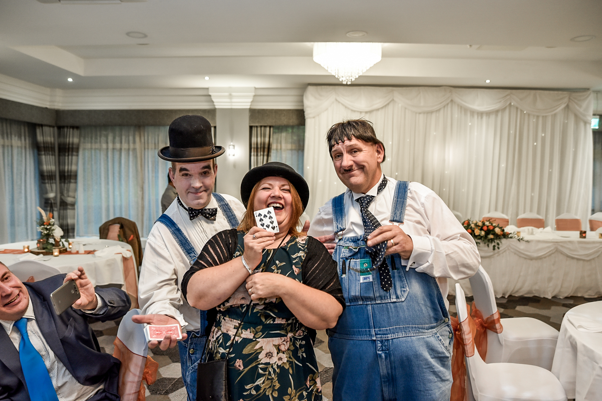 We have performed as Laurel and Hardy for over 20 years. We are based in the North West and have posed for thousands of photos and entertained with comedy close-up magic, mind reading and illusions at hundreds of indoor and outdoor events all over the UK and abroad.